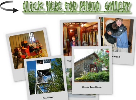 Vance: The museum had many amazing things. There was an outhouse and a hotel. One of the exhibits was about boats and boat motors. Next we saw an exhibit on art. In number 21 my Dad got some pictures on a train. I got to go up in a fire tower. The café had a nice view of Blue Mountain Lake.